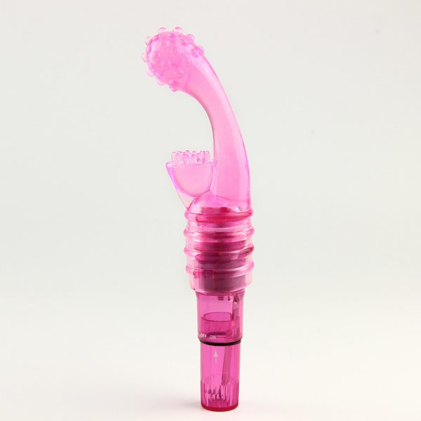 This 4″ mini vibrator with clitoral stimulator attachment pack quite a lot of power into a small package. Operating on one standard AA battery, this little baby won’t give up until you do. This vibrator is also water resistant and clean easily.