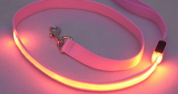 4′ Nylon Pet Leash with LED Lights (Medium Wide, Pink)