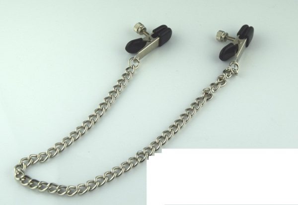 Check out these fully adjustable alligator clamps with a fantastic chrome finish. These clamps adjust from barely there to OMG by turning the set screw on the side. The two clamps are connected by a 12″ chrome plated chain.