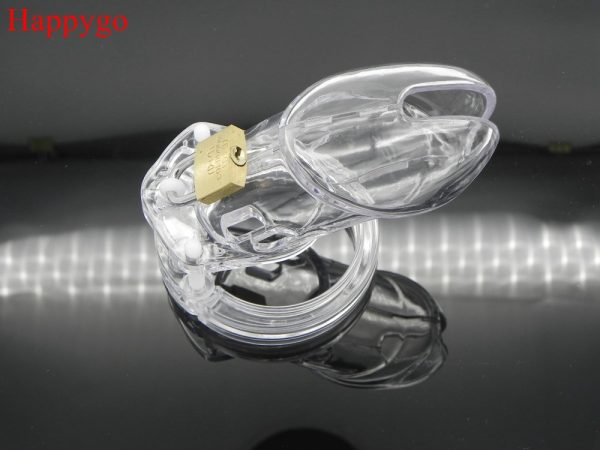 This Male Chastity Device (Cock Cage) comes with 5 sizes of cock rings to ensure a perfect fit! It also includes several spacers of different lengths to assist with the final adjustments. It locks into place with a nice little Master lock (includes two ke