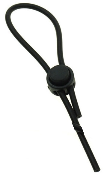 Now here is a cock ring that is extremely easy to put on and take off – the Lasso! Simply press down on the little round release button to allow the center piece to slide on the silicone cords. Open fully and wrap around your entire package (penis & testicles) and then press again and slide up to tighten. So very adjustable! Can also be used on nipples!