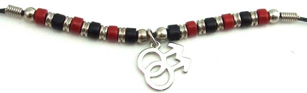 Black & Red Ceramic Beads with Double Male Charm
