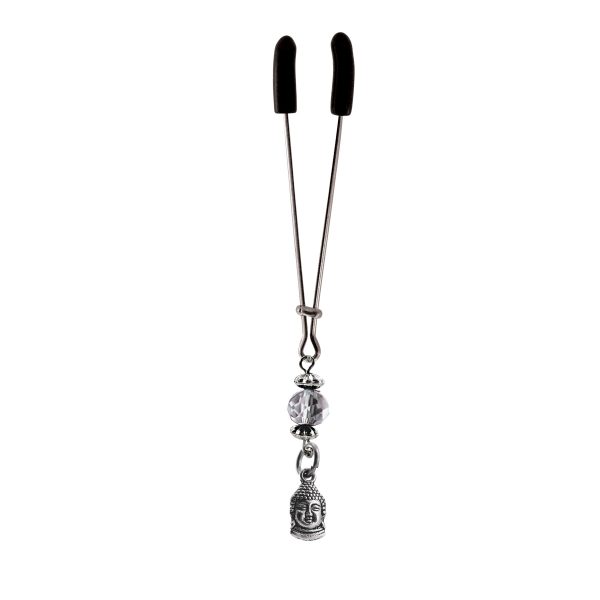 Clit Clamp – Tweezer – Chrome W/Buddha Charm and Silver Bead includes organza gift storage bag