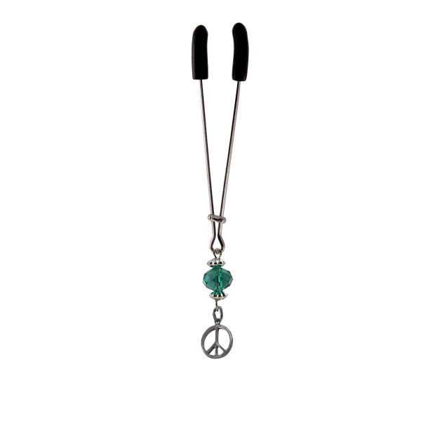 This tweezer clamp from ClitoErotique is fully adjustable just slide the bar up to increase the pressure and sensation. The cute Peace Sign Charm and Turquoise Bead adds a touch of your unique personality. A clit clamp is a simple sex toy designed to gently squeeze the clitoris and provide thrilling arousal without vibrations. Clit clamps are gentle sex toys designed to enhance female sexual pleasure.