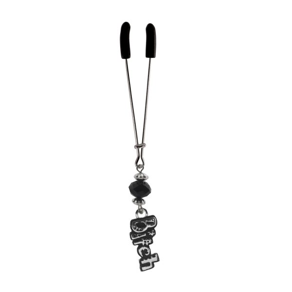 This tweezer clamp from ClitoErotique is fully adjustable just slide the bar up to increase the pressure and sensation. The cute Bitch Charm and black bead adds a touch of your unique personality. A clit clamp is a simple sex toy designed to gently squeeze the clitoris and provide thrilling arousal without vibrations. Clit clamps are gentle sex toys designed to enhance female sexual pleasure.
