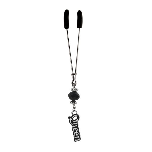 This tweezer clamp from ClitoErotique is fully adjustable just slide the bar up to increase the pressure and sensation. The cute Queen Charm and black bead adds a touch of your unique personality. A clit clamp is a simple sex toy designed to gently squeeze the clitoris and provide thrilling arousal without vibrations. Clit clamps are gentle sex toys designed to enhance female sexual pleasure.