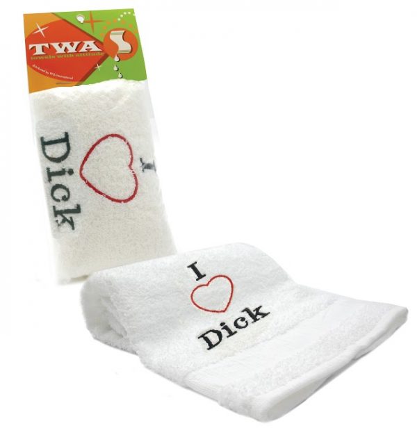 This fun embroidered “i “heart” dick” towel is not only a unique and clever gift; it is also a very practical and usable one. embroidered with one of 48 different sexy words or phrases these towels are super absorbent.  made in the usa; these 86% cotton and 14% polyester towels measure 27″ x 16″ and are machine washable. shouldn’t you keep at least one handy?