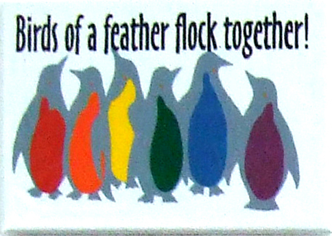 Birds of a feather Magnet. Vibrant colors. Metal with clear mylar coating magnet. 2 x 3″ or 5.08 x 7.62cm. By PHS International.