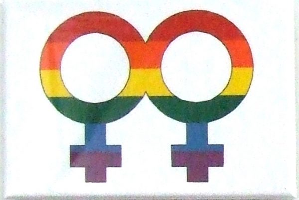 Double female symbol Magnet. Vibrant colors. Metal with clear mylar coating magnet. 2 x 3″ or 5.08 x 7.62cm. By PHS International.