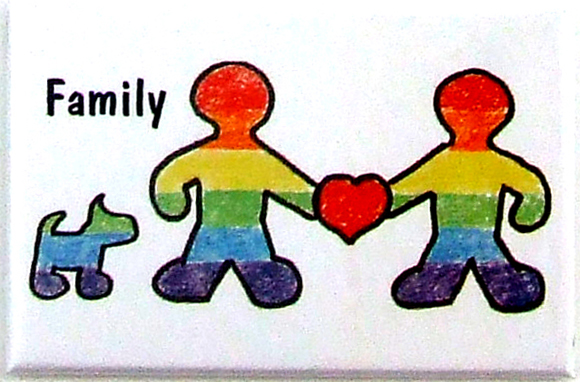 Family with Dog Magnet. Vibrant colors. Metal with clear mylar coating magnet. 2 x 3″ or 5.08 x 7.62cm. By PHS International.