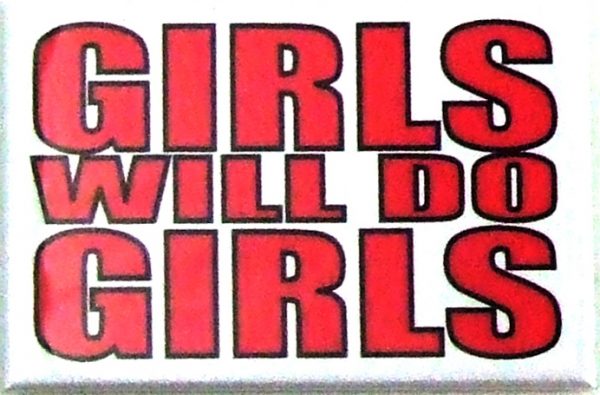 Girls Will Do Girls Magnet. Vibrant colors. Metal with clear mylar coating magnet. 2 x 3″ or 5.08 x 7.62cm. By PHS International.