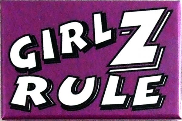 Girlz Rule Magnet. Vibrant colors. Metal with clear mylar coating magnet. 2 x 3″ or 5.08 x 7.62cm. By PHS International.