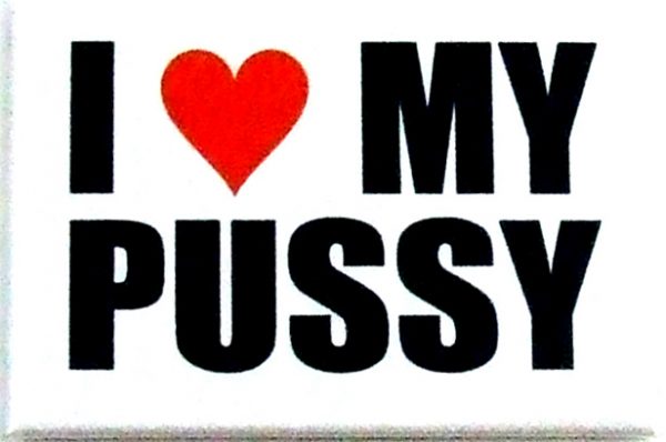 I love my pussy Magnet. Vibrant colors. Metal with clear mylar coating magnet. 2 x 3″ or 5.08 x 7.62cm. By PHS International.