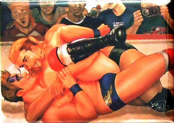 Big Time Wrestlin’ Magnet. Vibrant colors. Metal with clear mylar coating magnet. 2 x 3″ or 5.08 x 7.62cm. Artist Joe Phillips By PHS International.