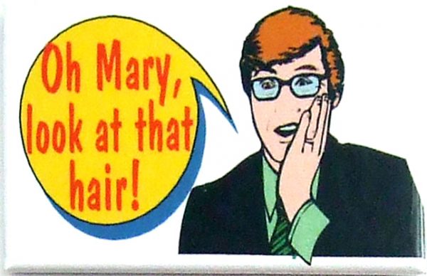 Oh Mary look at that hair. Magnet. Vibrant colors. Metal with clear mylar coating magnet. 2 x 3″ or 5.08 x 7.62cm. By PHS International.