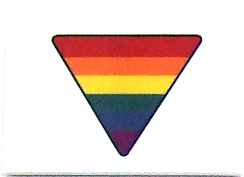 Rainbow Triangle Magnet. Vibrant colors. Metal with clear mylar coating magnet. 2 x 3″ or 5.08 x 7.62cm. By PHS International.