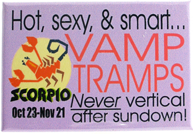 Hot, sexy and smart, Vamp Tramps,never verticle after sundown! Magnet. Vibrant colors. Metal with clear mylar coating magnet. 2 x 3″ or 5.08 x 7.62cm. By PHS International.