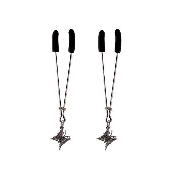 These tweezer style nipple clamps by NipLicious are fully adjustable, just slide the bar up to increase the pressure and sensation. Check out the fun Butterfly Charms, they add a touch of your personality. Lots of charms to choose from.