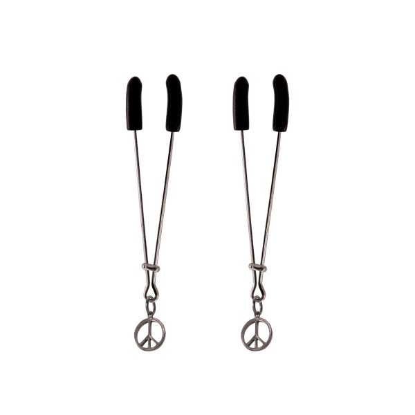 These tweezer style nipple clamps by NipLicious are fully adjustable, just slide the bar up to increase the pressure and sensation. Check out the fun Peace Sign Charms, they add a touch of your personality. Lots of charms to choose from.