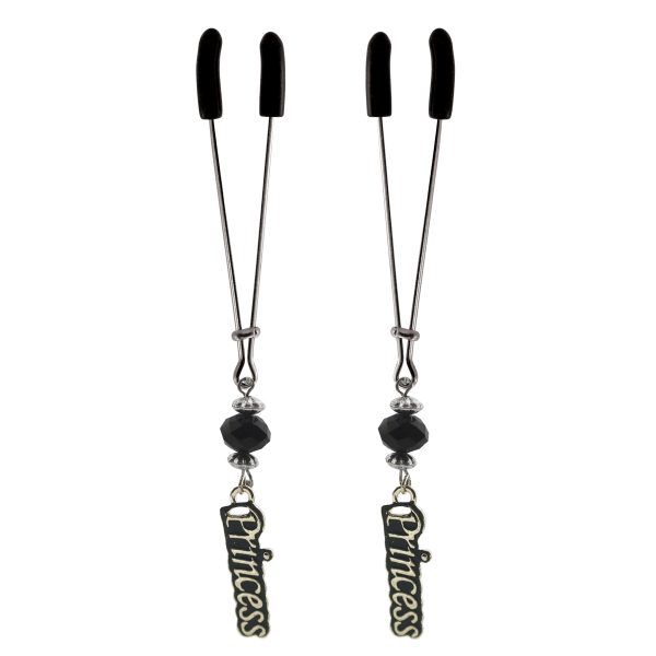 These tweezer style nipple clamps by NipLicious are fully adjustable, just slide the bar up to increase the pressure and sensation. Check out the fun Princess Charms and Black Beads, they add a touch of your personality. Lots of charms to choose from.
