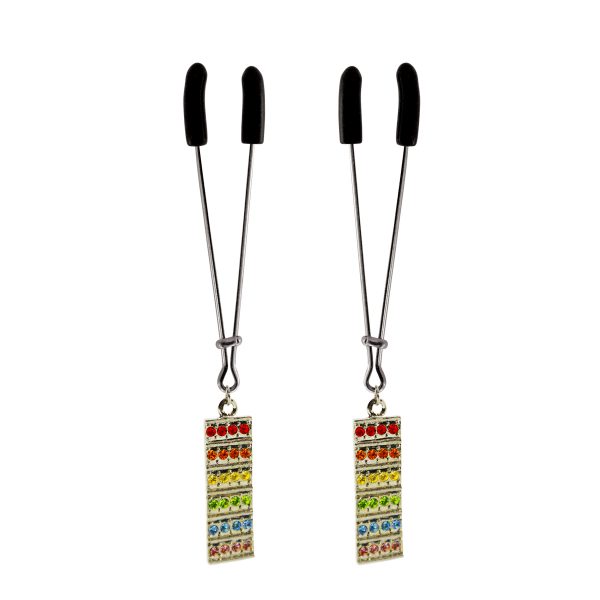 These tweezer style nipple clamps by NipLicious are fully adjustable, just slide the bar up to increase the pressure and sensation. Check out the fun Rainbow Charms, they add a touch of your personality. Lots of charms to choose from.