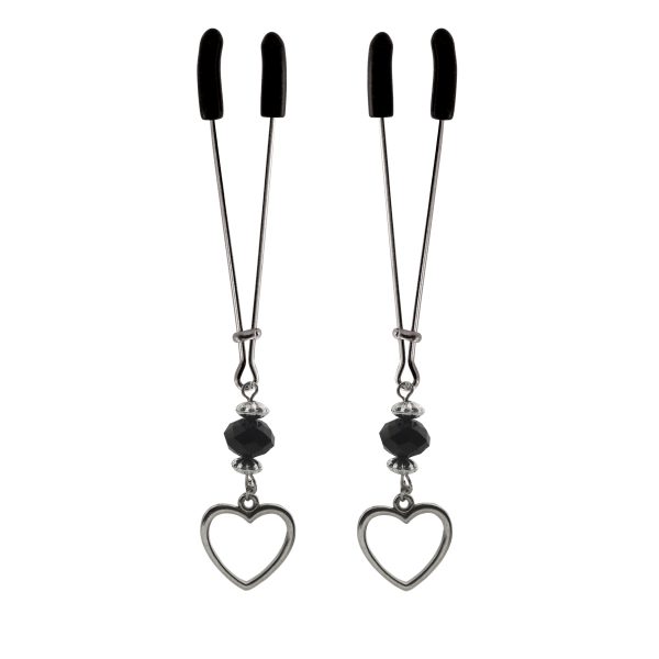 These tweezer style nipple clamps by NipLicious are fully adjustable, just slide the bar up to increase the pressure and sensation. Check out the fun Silver Heart Charms and Black Beads, they add a touch of your personality. Lots of charms to choose from.