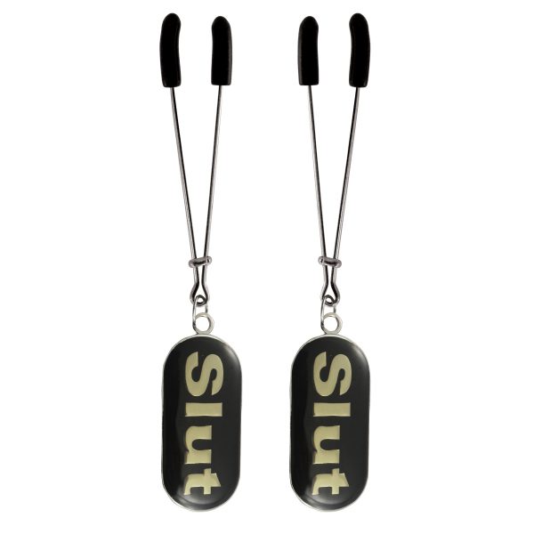 These tweezer style nipple clamps by NipLicious are fully adjustable, just slide the bar up to increase the pressure and sensation. Check out the fun Slut Tag Charms, they add a touch of your personality. Lots of charms to choose from.