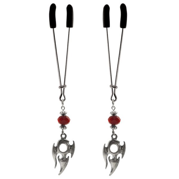 These tweezer style nipple clamps by NipLicious are fully adjustable, just slide the bar up to increase the pressure and sensation. Check out the fun Tribal Charms and Red Beads, they add a touch of your personality. Lots of charms to choose from.