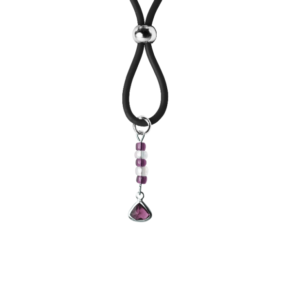 February’s birthstone is the amethyst. These amethyst nipple lassos are decorated with dazzling purple & crystal clear seed beads. The purple, black or clear silicone loops encircle your nipple and the silver bead is used to tighten the loop. Available in the birthstones of every month!