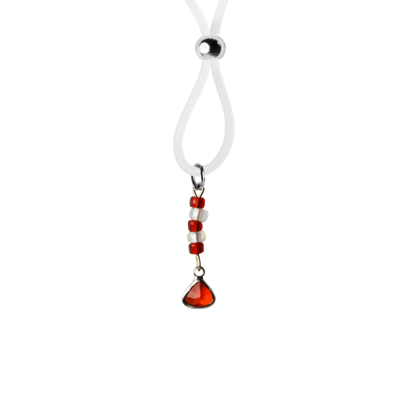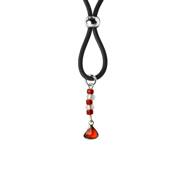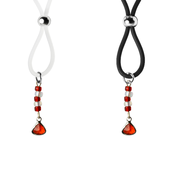 January’s birthstone is the garnet. These garnet nipple lassos are decorated with dazzling red & crystal clear seed beads. The black or clear silicone loops encircle your nipple and the silver bead is used to tighten the loop. Available in the birthstones of every month!