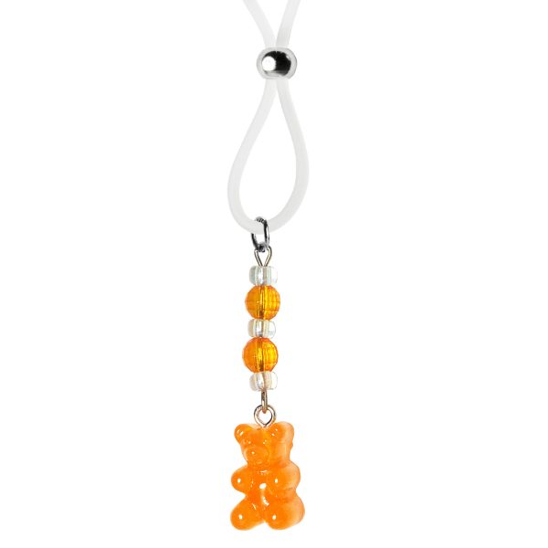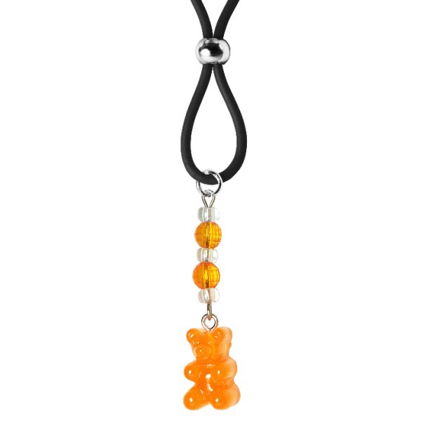 How adorable are these cute “Gummie” bear charms? This pair of orange gummies are accented with orange faceted beads and clear seed beads. Available on clear or black silicone loops which encircle your nipple; then the silver slider bead is slide up to hold the loop in place. Collect all 6 colors.