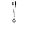 This charm features lovely pearl in an open clamshell. The charm hangs from a gleaming chrome tweezer style clit clamp. The tweezer clamp is fully adjustable by sliding the bar up or down. includes organza gift storage bag (color will be random) A clit clamp is a simple sex toy designed to gently squeeze the clitoris and provide thrilling arousal without vibrations. Clit clamps are gentle sex toys designed to enhance female sexual pleasure.