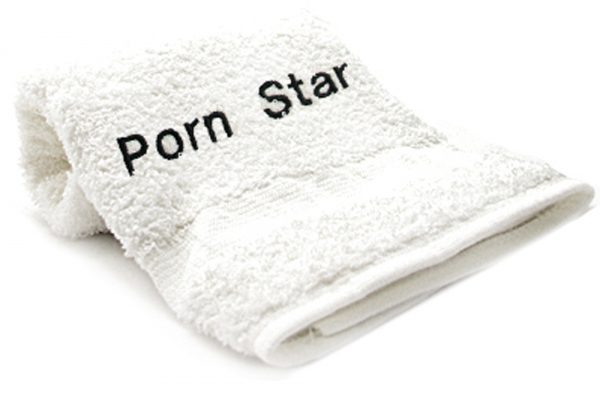This fun embroidered “porn star” towel is not only a unique and clever gift; it is also a very practical and usable one. embroidered with one of 48 different sexy words or phrases these towels are super absorbent.  made in the usa; these 86% cotton and 14% polyester towels measure 27″ x 16″ and are machine washable. shouldn’t you keep at least one handy?