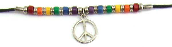 Rainbow cermamic beads large peace sign necklace