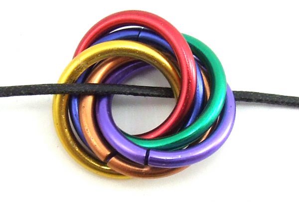 Rainbow Entwined Rings – Black cord Necklace