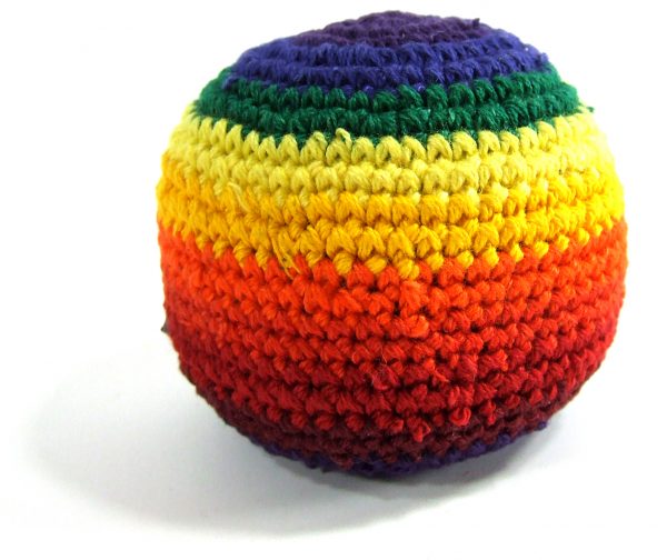 Hand crafted in Guatemala this rainbow hacky sack will provide hours of fun. Brilliant rainbow colors.