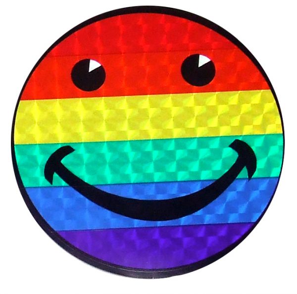 This 3″ in diameter smilie face is a cute way to show the world your sense of pride. Made from a static cling material, it can be removed and reapplied over and over again. Come on, give us a smile!