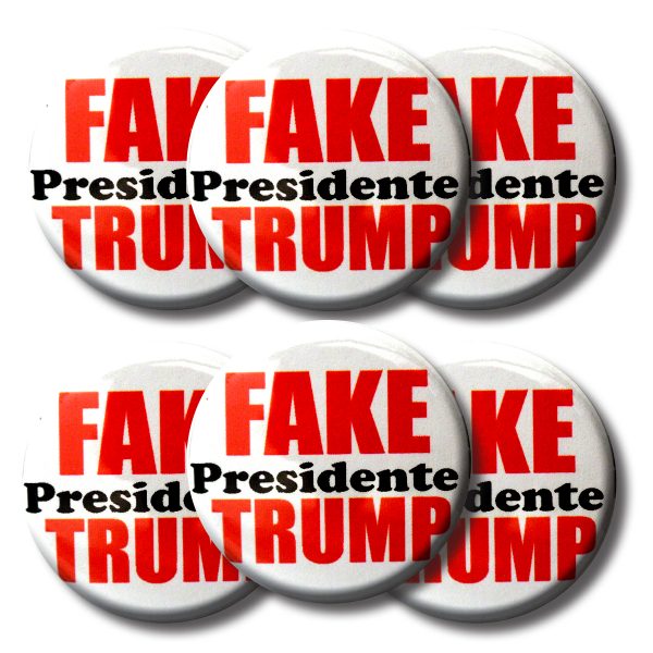 SKU: TB123 Category: Buttons Tag: Set FAKE President TRUMP buttons (SET OF 6) 1.25” or 3.175cm pin back button