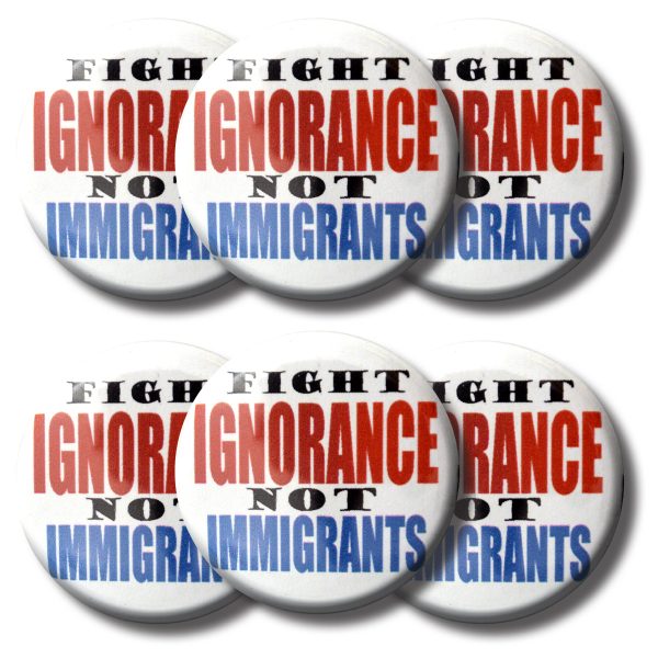 Set Fight IGNORANCE Not IMMIGRANTS buttons (SET OF 6) 1.25” or 3.175cm pin back button