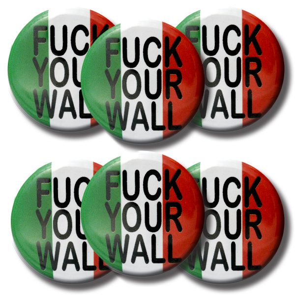 SKU: TB112 Category: Buttons Tag: Set FUCK YOUR WALL on Mexican Flag buttons (SET OF 6) 1.25” or 3.175cm pin back button