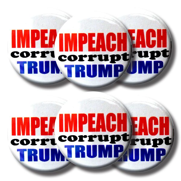 SKU: TB128 Category: Buttons Tag: Set IMPEACH corrupt TRUMP buttons (SET OF 6) 1.25” or 3.175cm pin back button