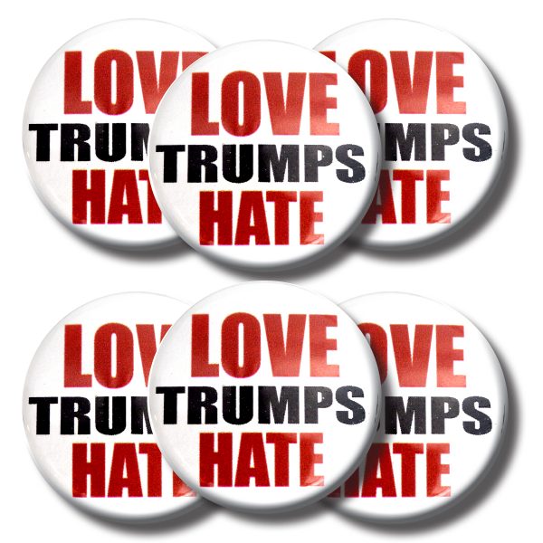 Set LOVE TRUMPS HATE buttons (SET OF 6) 1.25” or 3.175cm pin back button