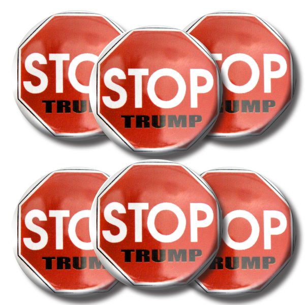 SKU: TB106 Category: Buttons Tag: Set STOP TRUMP buttons (SET OF 6) 1.25” or 3.175cm pin back button