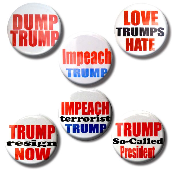 Set tRUMP anti4 mix of buttons (SET OF 6) 1.25” or 3.175cm pin back button TB01,07,08,26,31,33