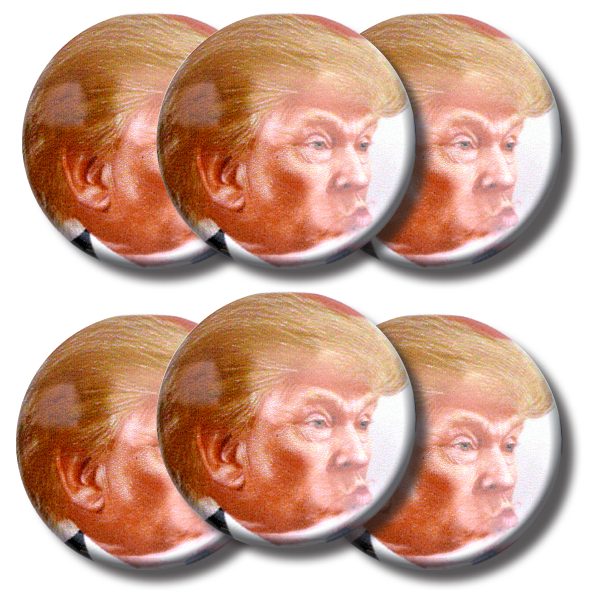 SKU: TB136 Category: Buttons Tag: Set tRUMP hair back buttons (SET OF 6) 1.25” or 3.175cm pin back button