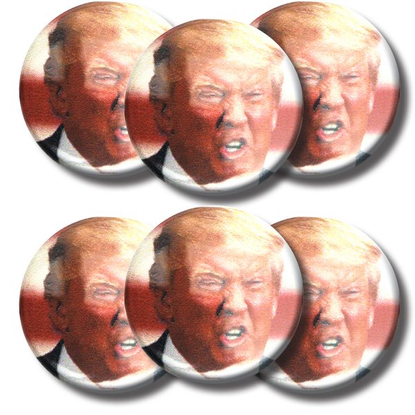 SKU: TB137 Category: Buttons Tag: Set tRUMP hair grrrrr buttons (SET OF 6) 1.25” or 3.175cm pin back button