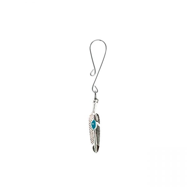 Silver Colored Feather Charm with Blue Accent on Dainty Curl Loop Style Clit Clamp includes organza gift storage bag