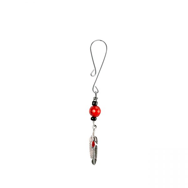 This silver colored feather charm features a pretty red accent in the center; it hangs on a dainty curl loop style clit clamp. A red facted bead adds some sparkle. The curl loop clamp is adjustable by squeezing. includes organza gift storage bag (color will be random) A clit clamp is a simple sex toy designed to gently squeeze the clitoris and provide thrilling arousal without vibrations. Clit clamps are gentle sex toys designed to enhance female sexual pleasure.