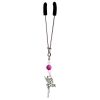 Silver Tinkerbell Fairy Charm on Chrome Tweezer Clit Clamp with Purple and Pink Faceted Beads includes organza gift storage bag