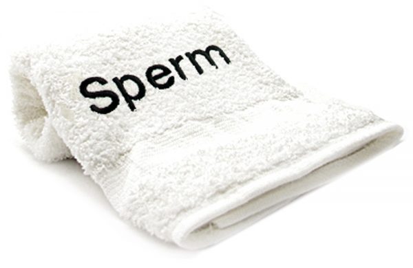 This fun embroidered “sperm” towel is not only a unique and clever gift; it is also a very practical and usable one. embroidered with one of 48 different sexy words or phrases these towels are super absorbent.  made in the usa; these 86% cotton and 14% polyester towels measure 27″ x 16″ and are machine washable. shouldn’t you keep at least one handy?